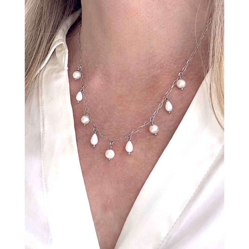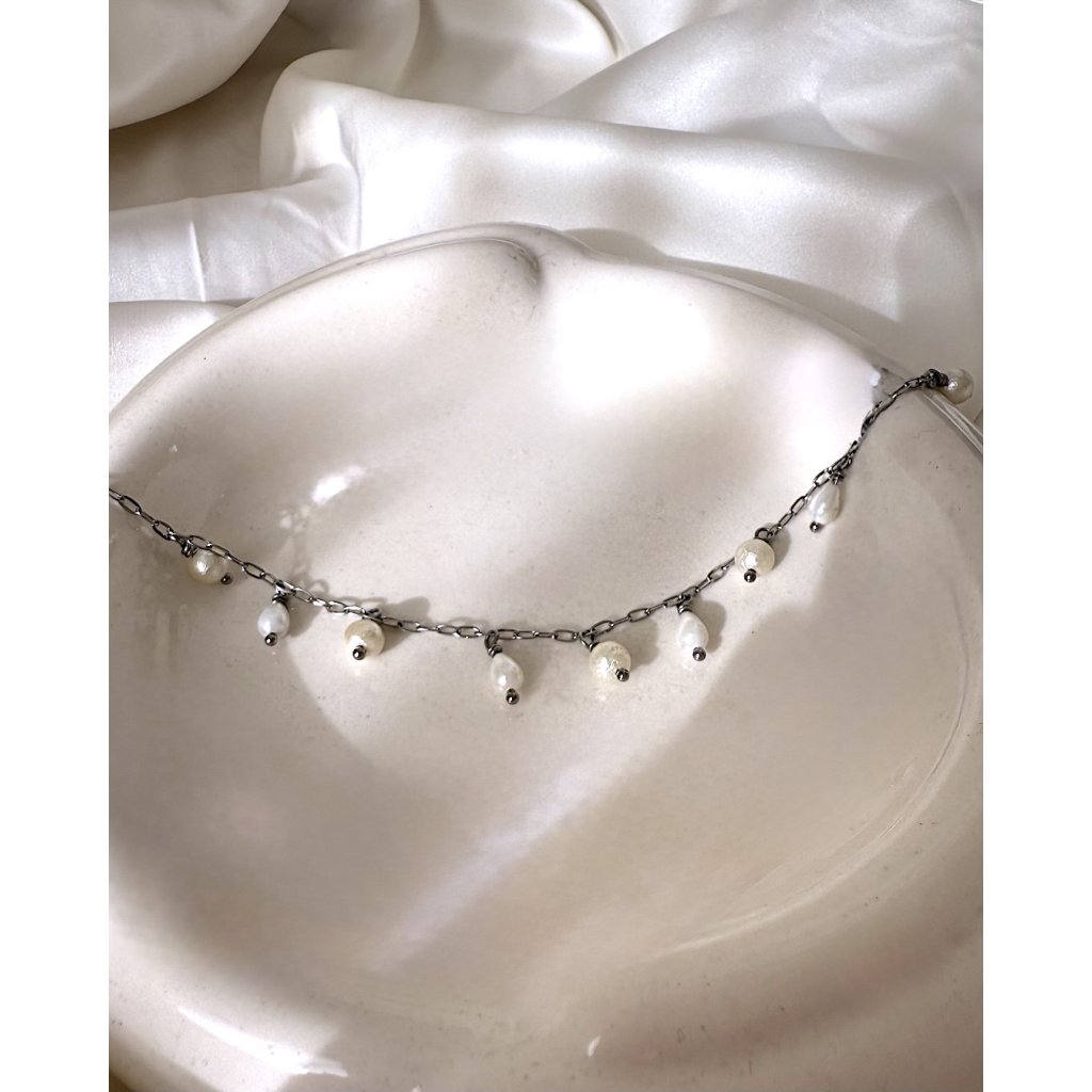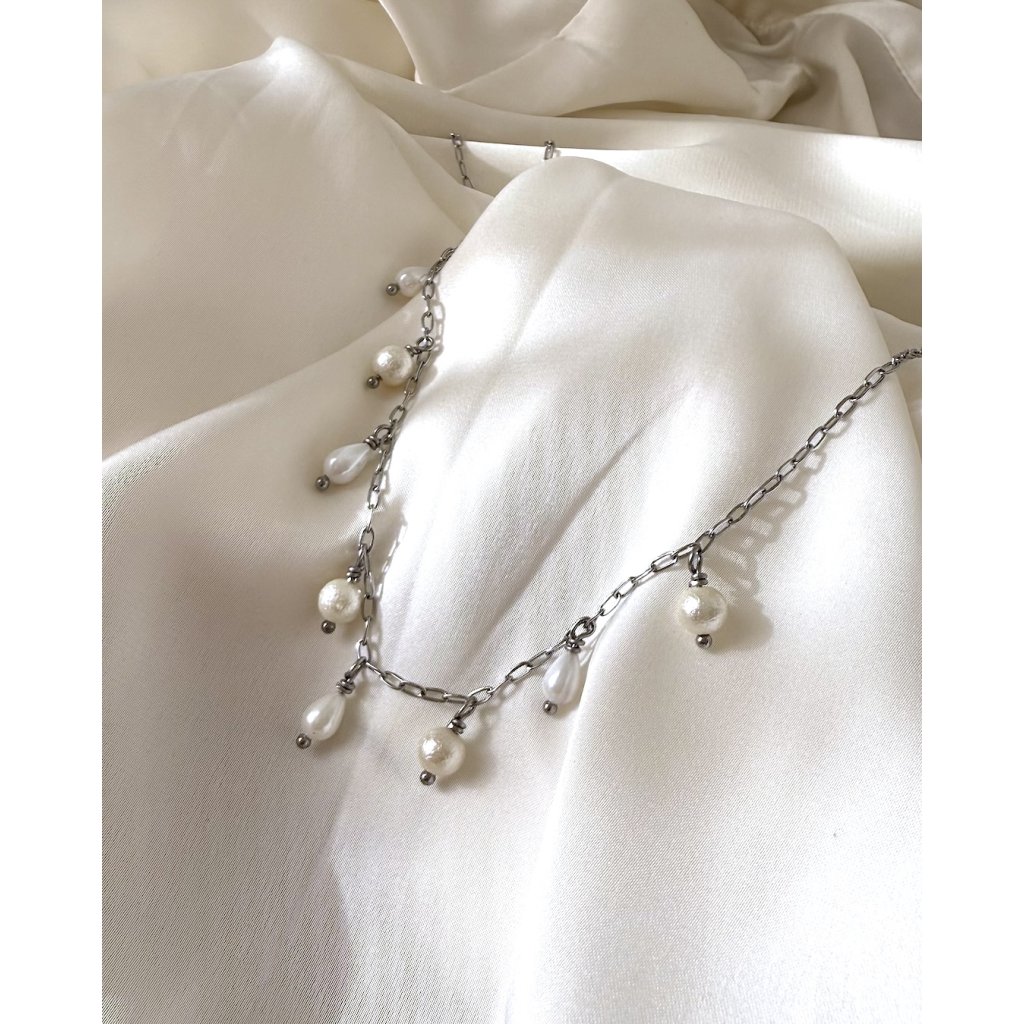 Náhrdelník s krásnou perletí s perlovým leskem na oválném ocelovém řetízku.