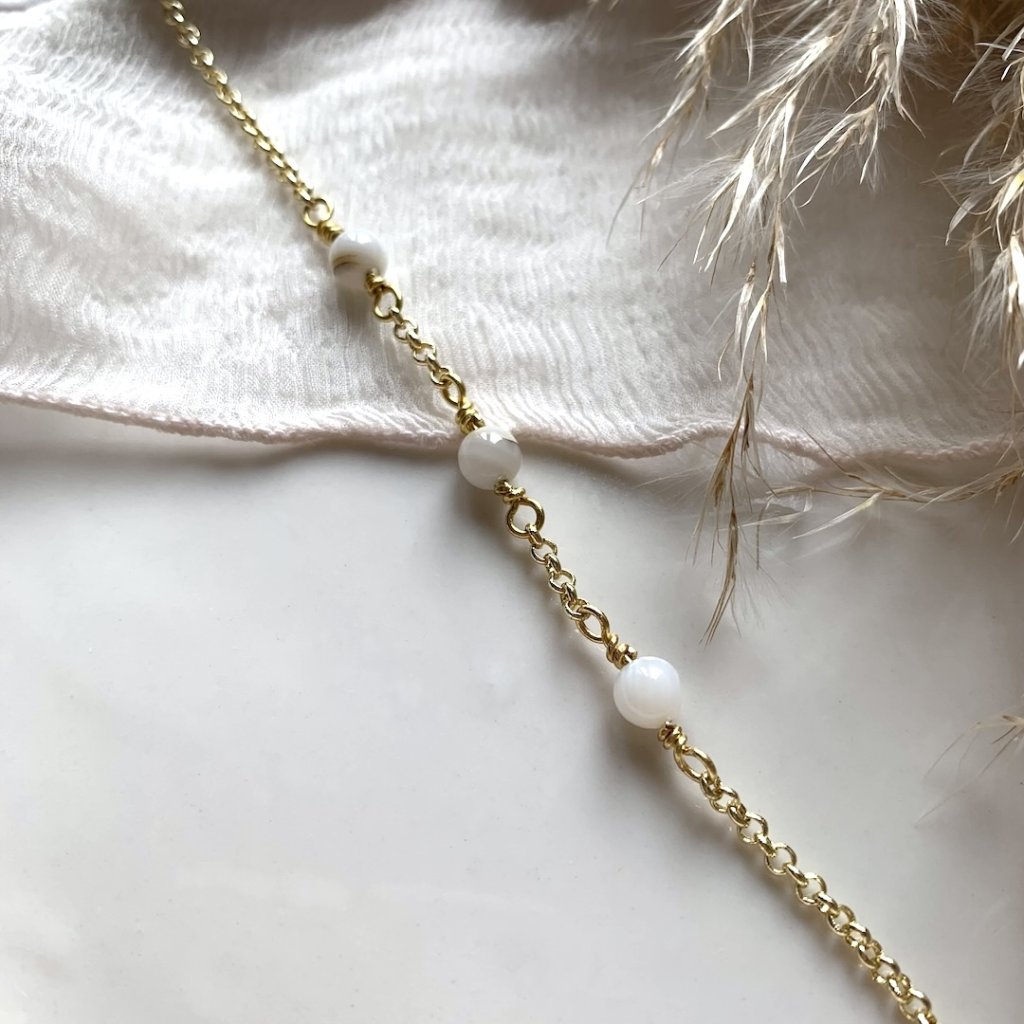 řetízkový náramek s perletí zlatý
