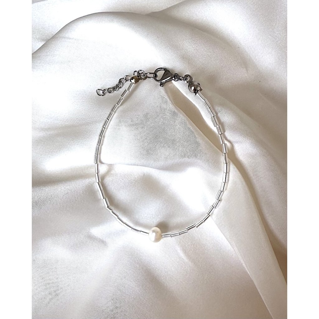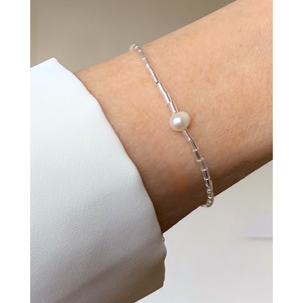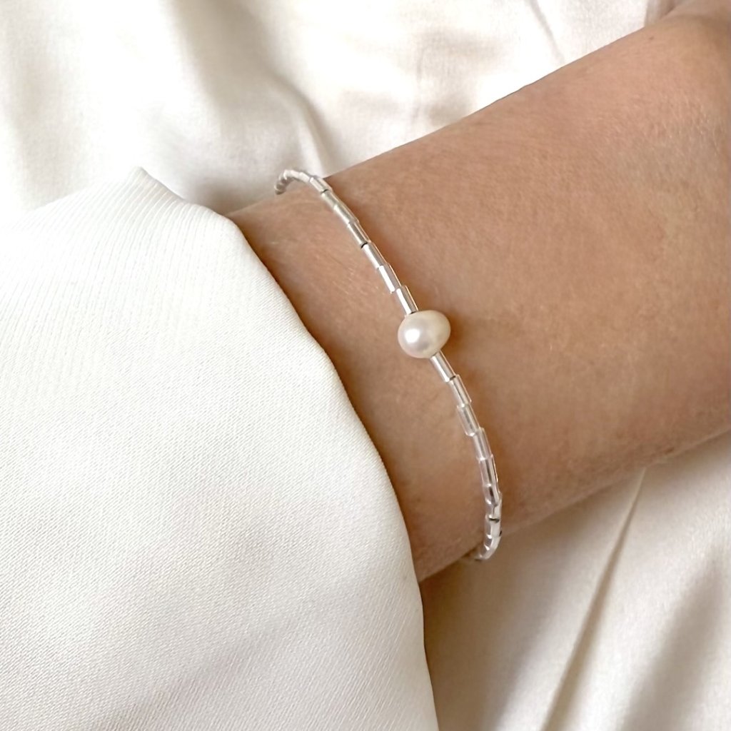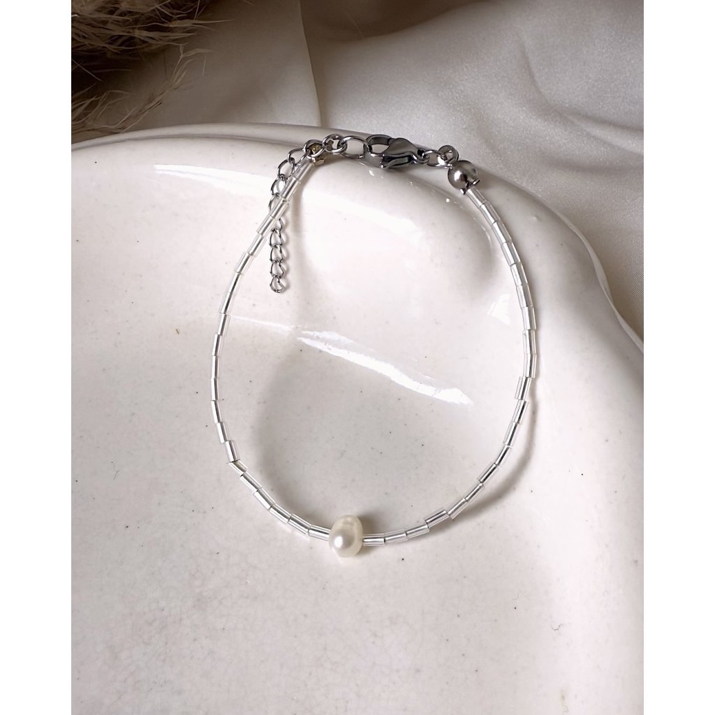 korálkový náramek stříbrný s perlou