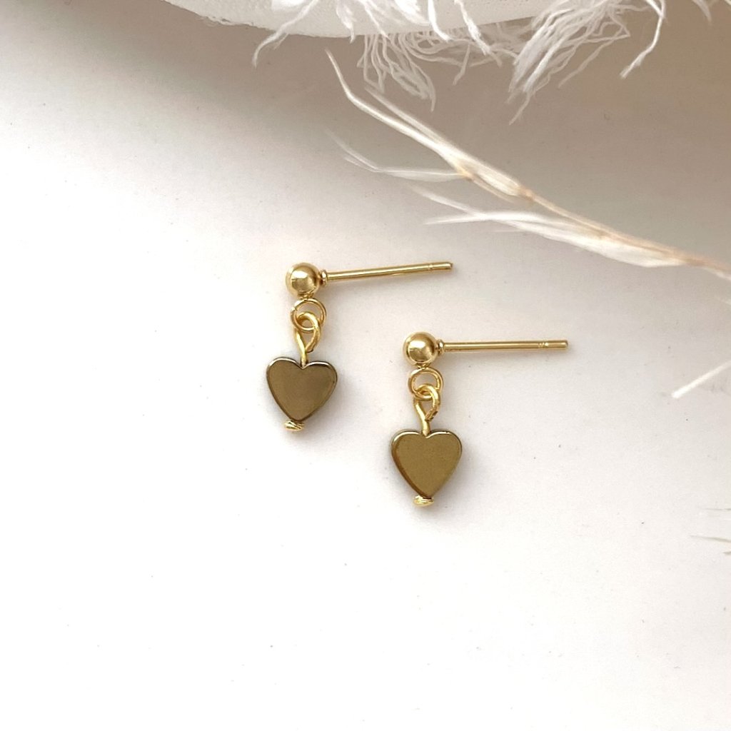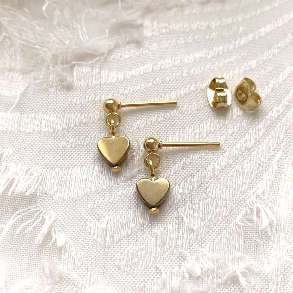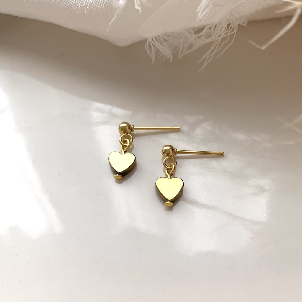 NÁUŠNICE SE SRDÍČKEM Z HEMATITU ZLATÉ